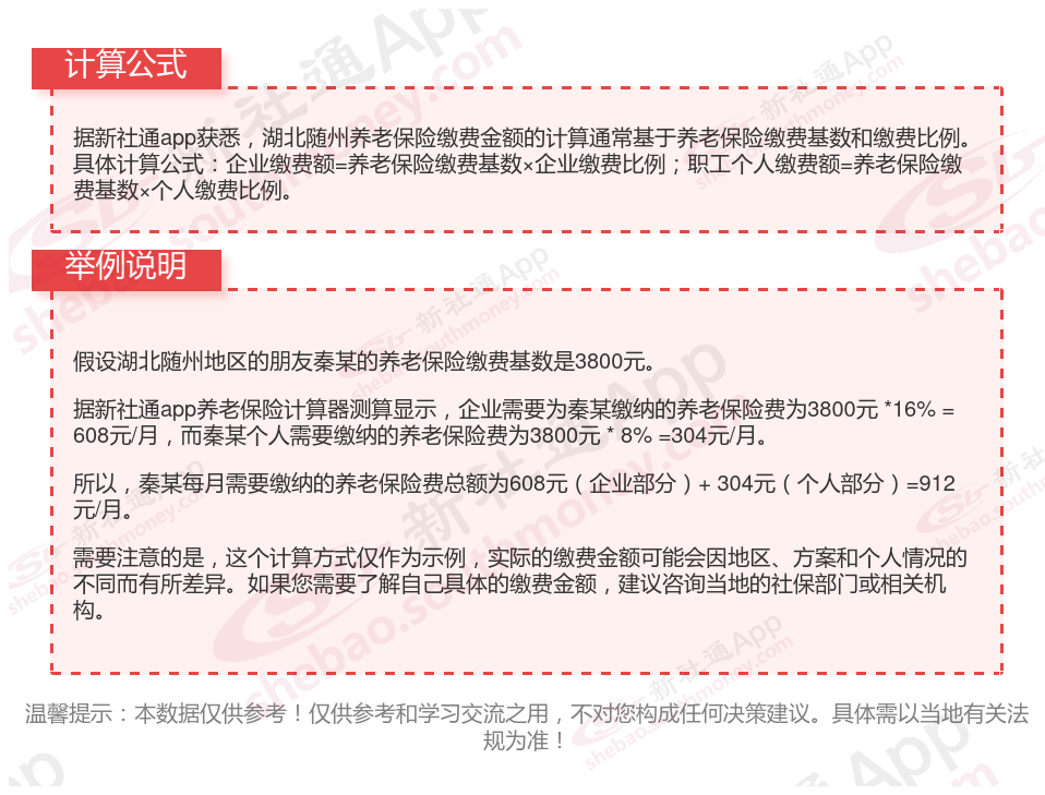 湖北随州养老保险缴费基数2023-2024年最新标准(最低)