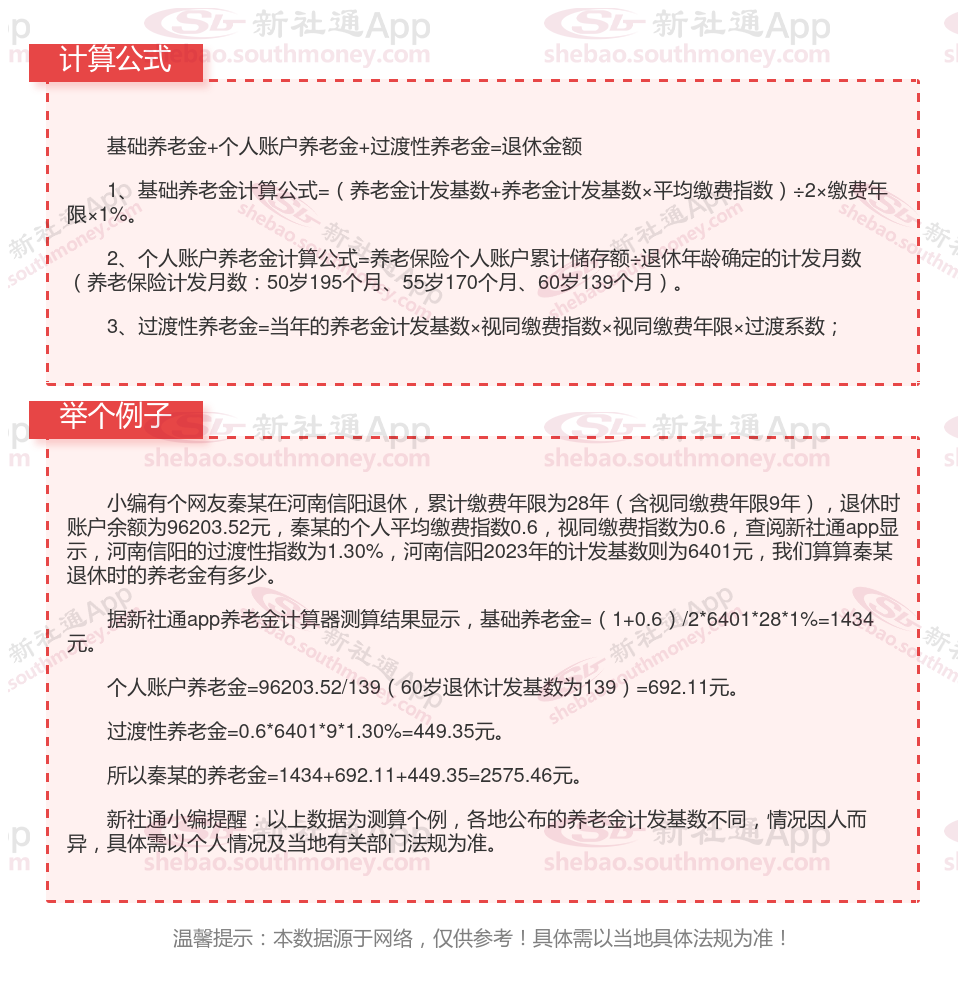 河南信阳养老保险退休能领多少钱?(在线计算举例说明)