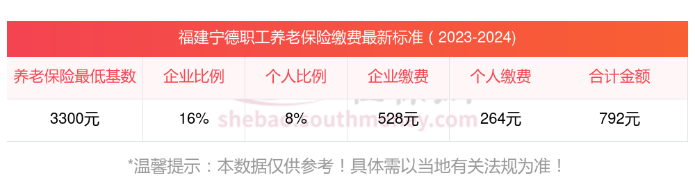 福建宁德养老保险缴费基数2023-2024最新标准 一个月要交多少钱?