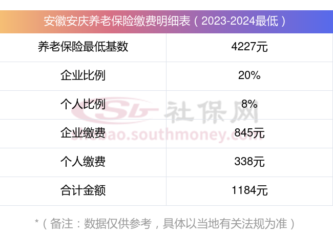 安徽安庆养老保险缴费基数2023-2024年最新标准(最低)