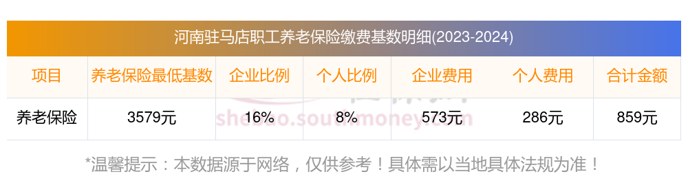 据新社通app获悉,河南驻马店的养老保险缴费金额因个人情况而异,包括个人缴费基数、缴费比例等因素。以下是一些参考信息: