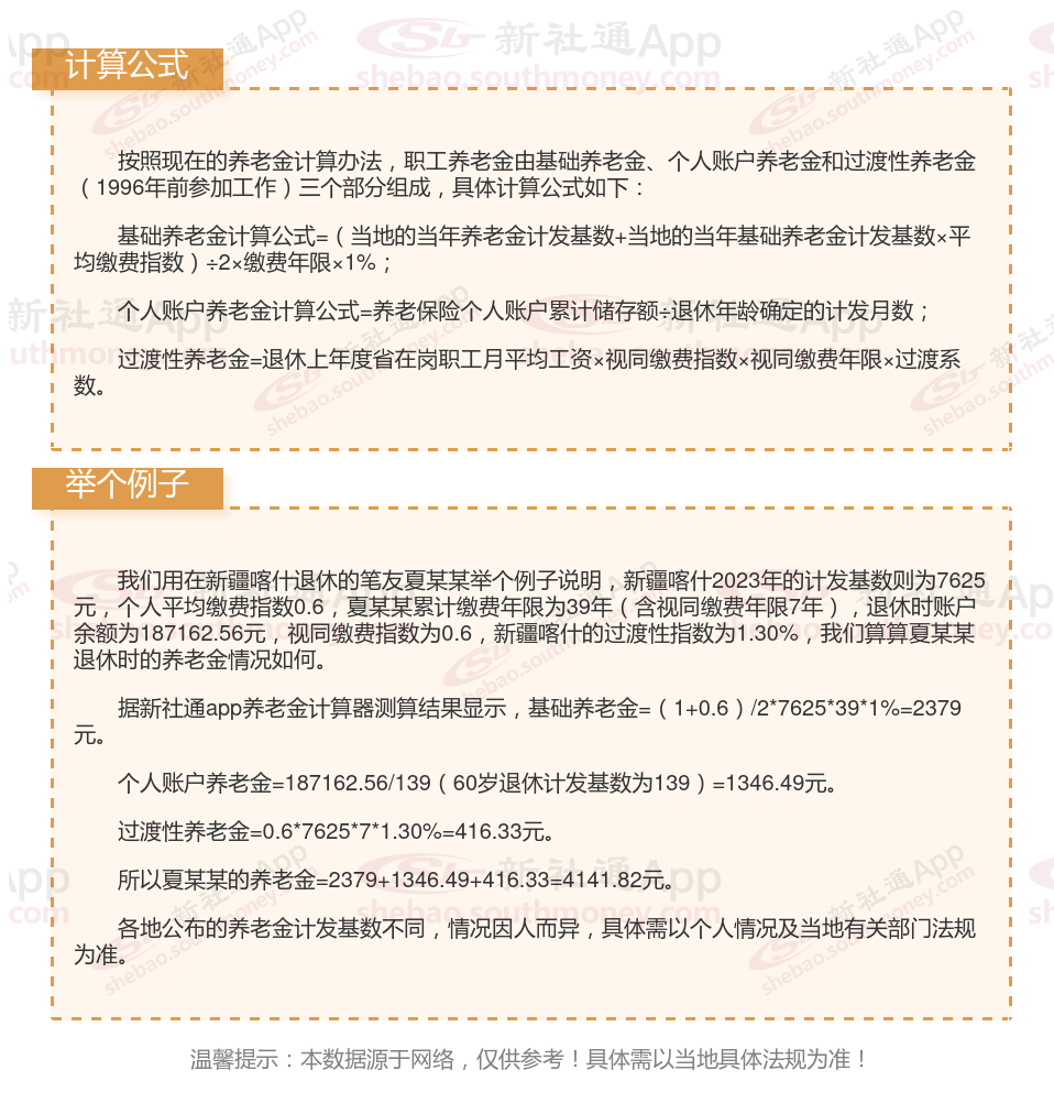 新疆喀什社保退休能领多少钱?(在线计算举例说明)
