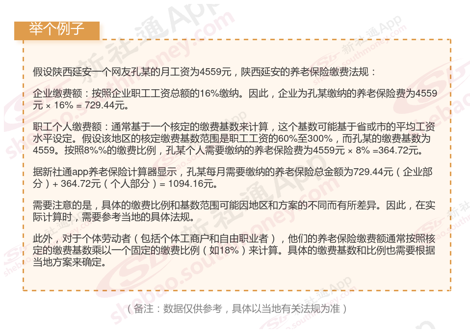 据新社通app获悉,陕西延安2024年职工养老保险缴费金额的计算涉及到缴费基数和缴费比例两个关键因素。