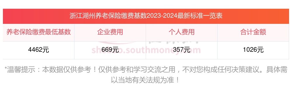 据新社通app获悉,养老保险是与参保人退休后的待遇相关的,只有达到了一定的缴费水平,退休后才能享受较好的待遇水平,也就是说缴费水平过低的话,那么未来能够享受的养老金水平也会比较低。而养老保险保费需要根据缴费基数确定。下面随新社通app小编一起来看看,浙江湖州养老保险缴费标准2024年是多少?附养老金计算公式(在线计算器)。
