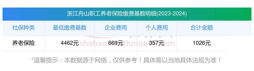 浙江舟山养老保险缴费基数2023-2024年最新标准(最低)要交多少钱一个月?