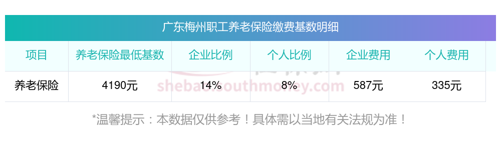 养老保险一个月要交多少钱?广东梅州缴费基数2023-2024年最新标准(最低)