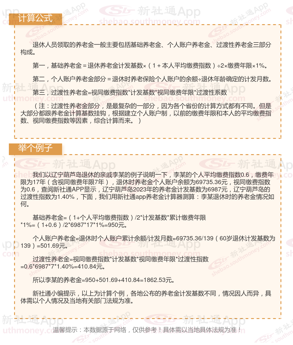 辽宁葫芦岛社保退休能领多少钱?(在线计算举例说明)
