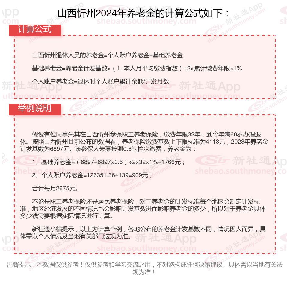 山西忻州养老金计算公式2024年计算方法(在线计算器)