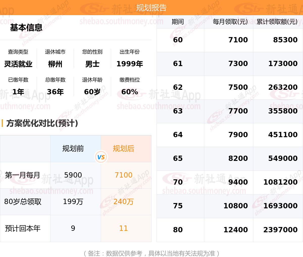 规划前:60岁退休后约领5900元,新社通APP-养老金规划后:60岁退休后约领7100元