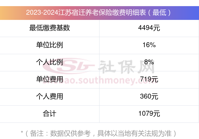 据新社通app获悉,一般情况下养老保险的缴费金额是根据当下的一个养老缴费基数来计算的。不同地区以及不同年份的养老缴费基数都是不一样的,每年都可以看到各地的养老缴费基数调整的消息。那么江苏宿迁养老缴费基数究竟是什么?下面随新社通app小编一起来看看江苏宿迁养老保险缴费比例个人和单位2024是多少!