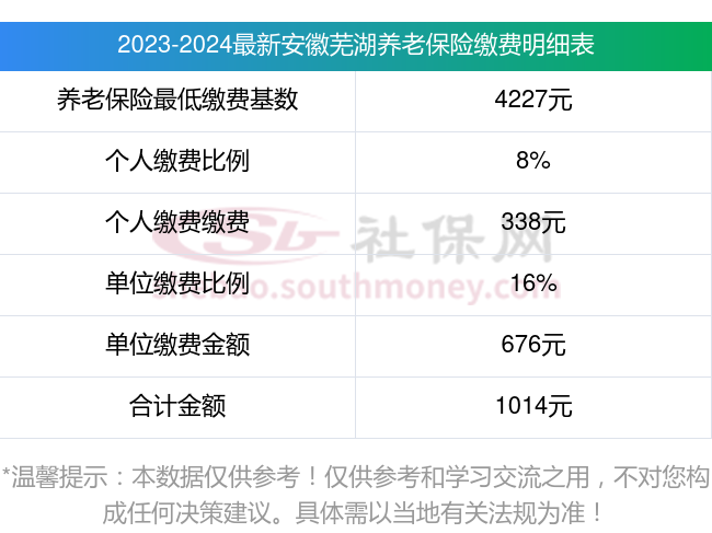 据新社通app显示,安徽芜湖养老保险缴费基数2023-2024年最新标准如下: