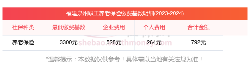 福建泉州养老保险的缴费比例是多少?据新社通app获悉,养老保险一般就是指基本养老保险,是直接关系到我们退休之后领取到的养老金的。往往养老保险在缴费的时候都是按照一定比例来缴费的,那么,福建泉州养老保险缴费基数2023-2024最新标准来了,下面随新社通app小编一起了解详情吧。