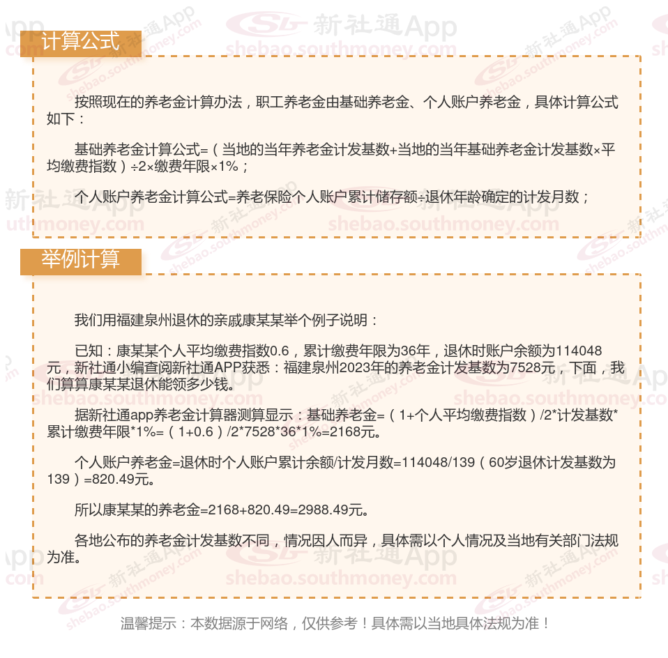 福建泉州养老金计算公式2024年计算方法(在线计算器)