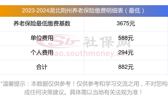 据新社通app获悉,养老保险是为居民退休后的经济来源提供保证的保险,对于单位职工而言,由用人单位和职工本人共同缴纳养老保险,保费较高;而居民的养老保险保费是由居民个人承担。不管是职工养老保险还是居民养老保险,保费都需要通过养老保险缴费基数计算得出。下面随新社通app小编一起来看看湖北荆州养老金缴费标准2023-2024最新基数比例是多少!