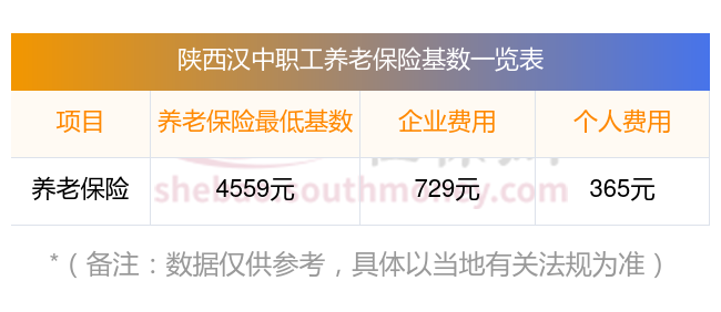 据新社通app显示,陕西汉中企业职工养老保险的缴费基数为:4559元。