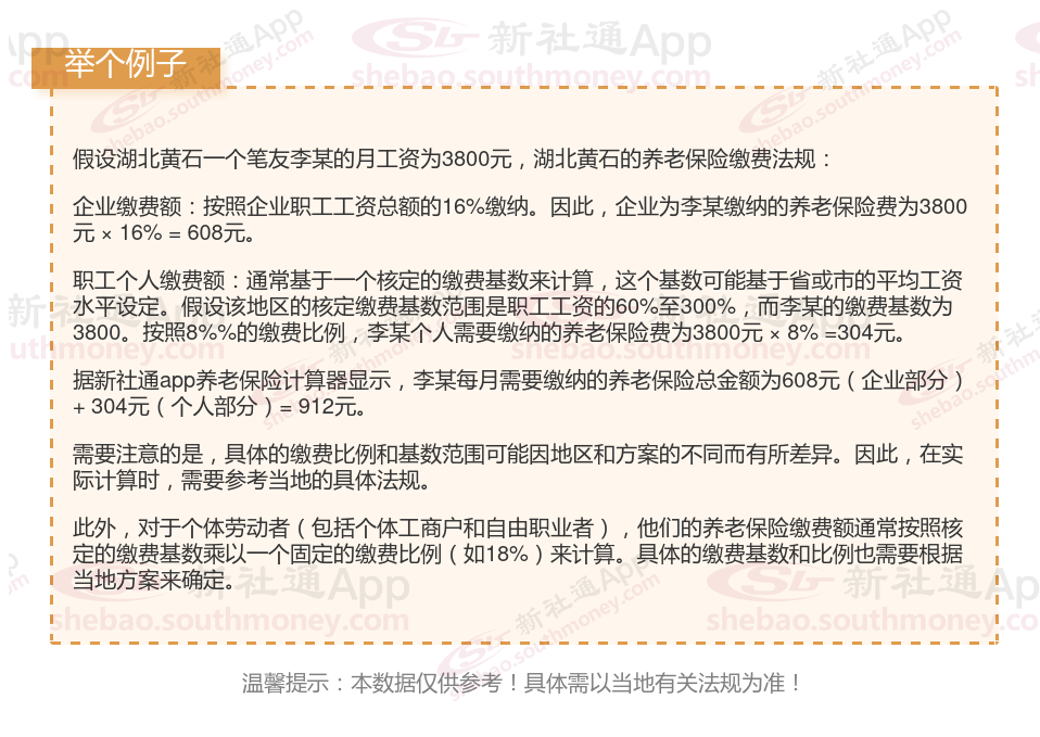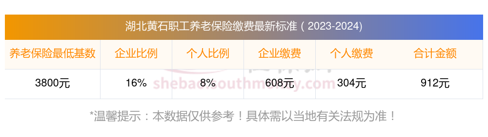 湖北黄石养老保险缴费基数2023-2024年最新标准(最低)要交多少钱一个月?