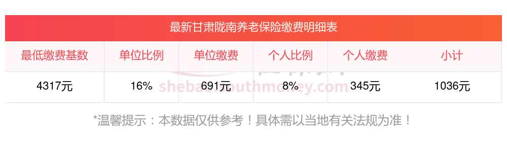 假设甘肃陇南某职工的工资总额为4317元,那么他的缴费基数就是4317元的60%到300%之间。如果他选择按照缴费基数为4317,据新社通app养老保险计算器测算显示,他的个人缴费额就是4317元*8%,等于345.36元。