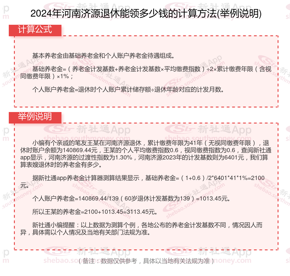 河南济源社保退休能领多少钱?(在线计算举例说明)