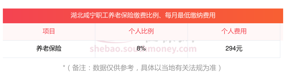 湖北咸宁养老保险缴费基数2023-2024年最新标准(最低)