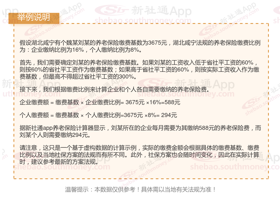 湖北咸宁养老保险一个月要交多少钱?举例说明