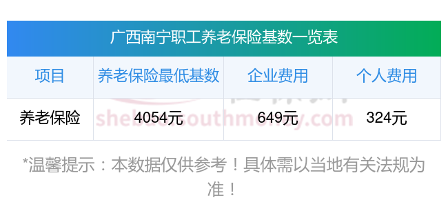 广西南宁养老保险缴费基数2023-2024年最新标准(最低)