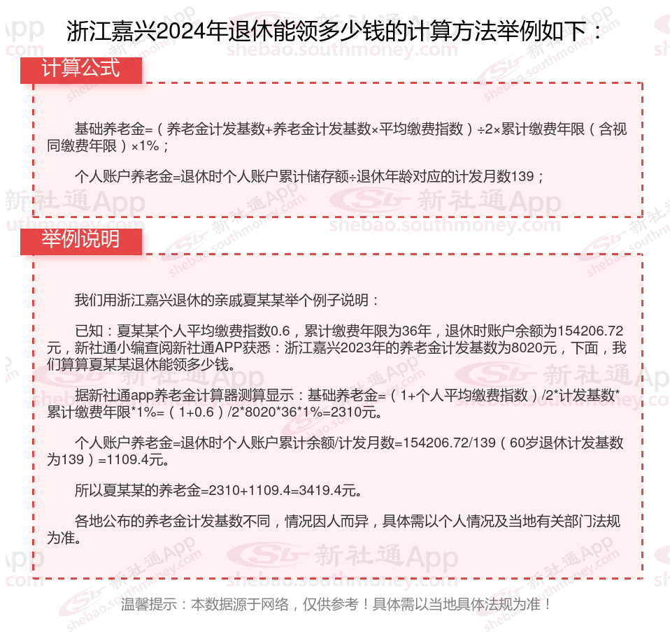 浙江嘉兴养老金计算公式2024年最新计算器 社保退休能领多少钱?