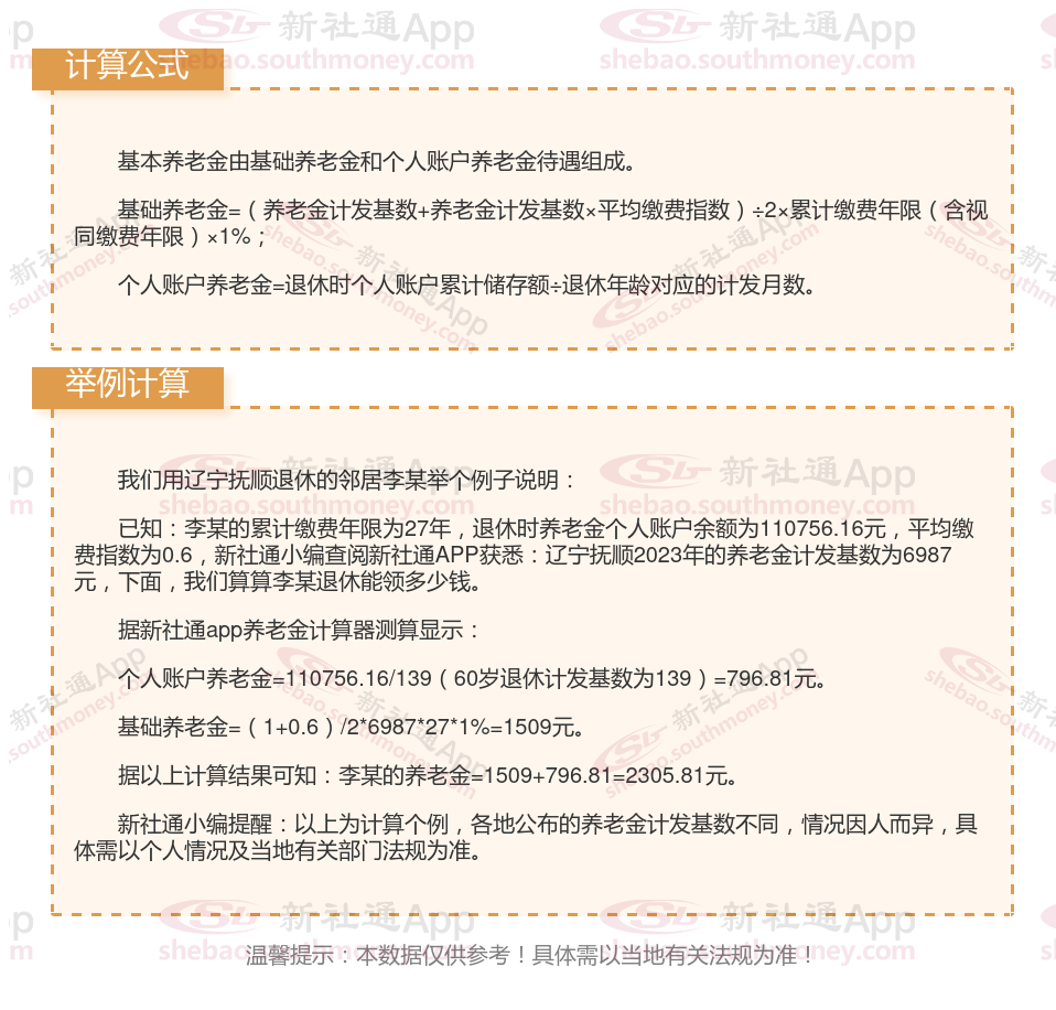 辽宁抚顺养老保险退休能领多少钱?(在线计算举例说明)