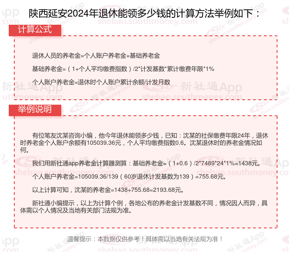 陕西延安养老保险退休能领多少钱?(在线计算举例说明)