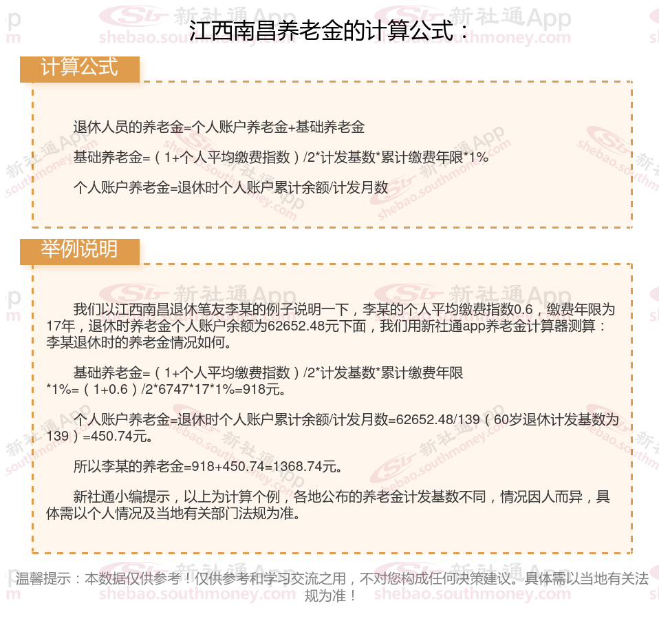 江西南昌养老保险退休能领多少钱?(在线计算举例说明)