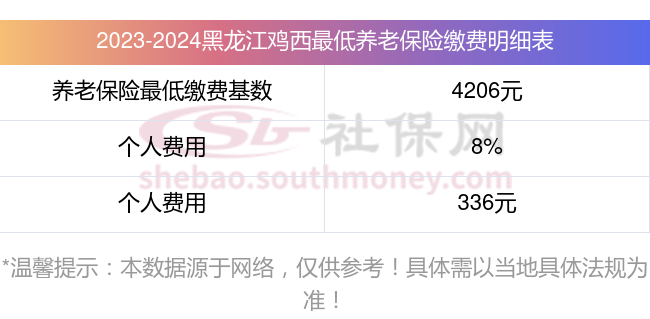 黑龙江鸡西缴费基数2023-2024年最新标准(最低)一个月要交多少钱?