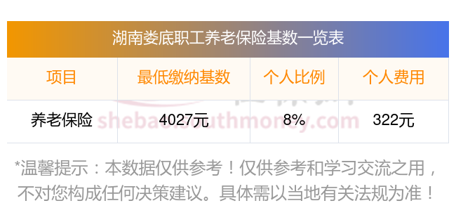 湖南娄底养老保险缴费基数2023-2024年最新标准(最低)一个月要交多少钱?举例说明