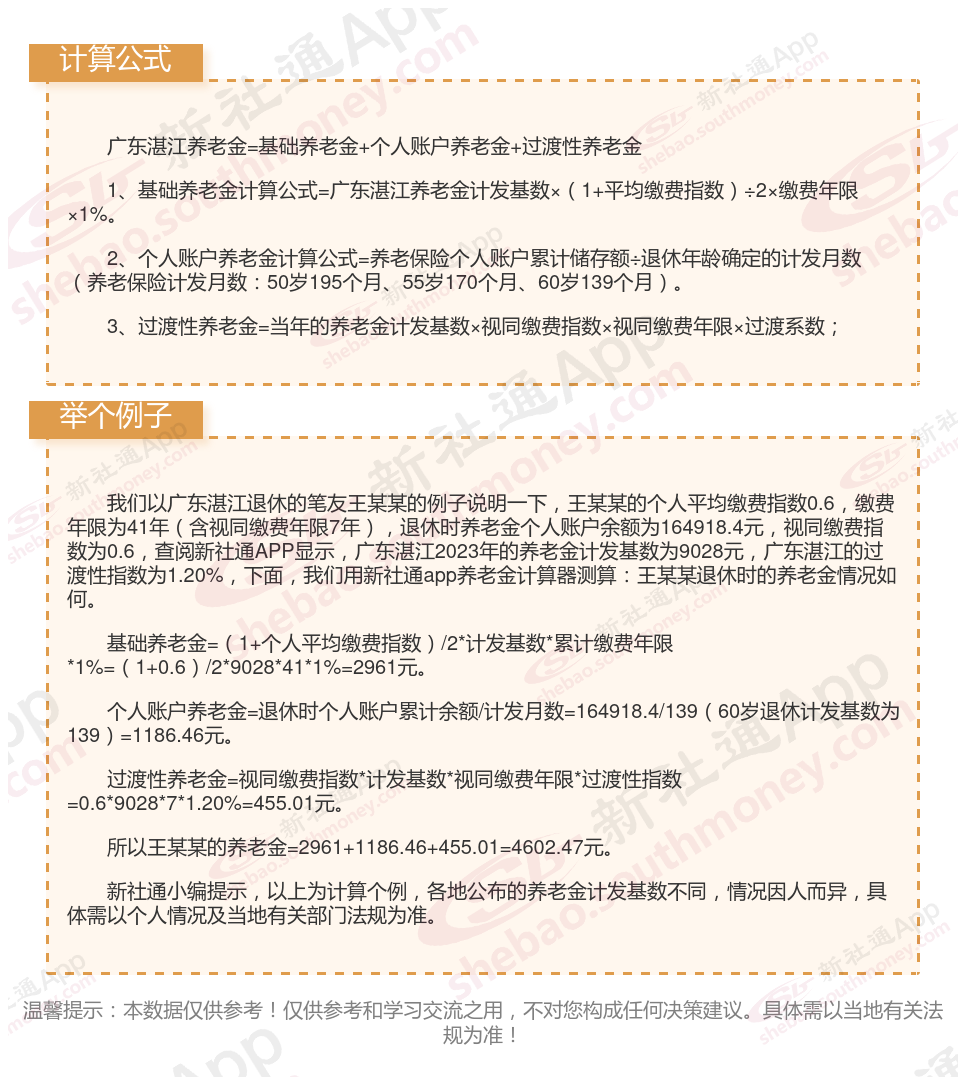 广东湛江社保退休能领多少钱?(在线计算举例说明)