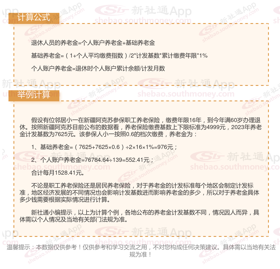 新疆阿克苏养老保险退休能领多少钱?(在线计算举例说明)