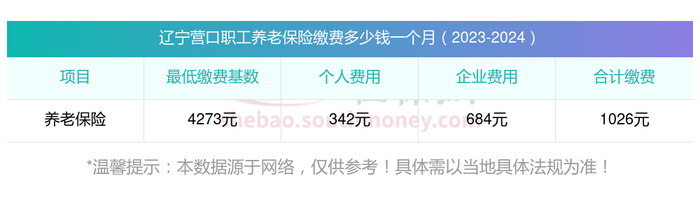 辽宁营口养老保险缴费基数2023年最新标准(最低)