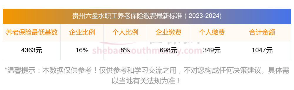 2023-2024年贵州六盘水养老保险缴费比例及基数标准(最新)