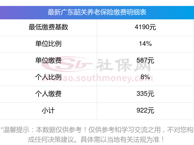广东韶关养老保险缴费基数2023-2024年最新标准(最低)