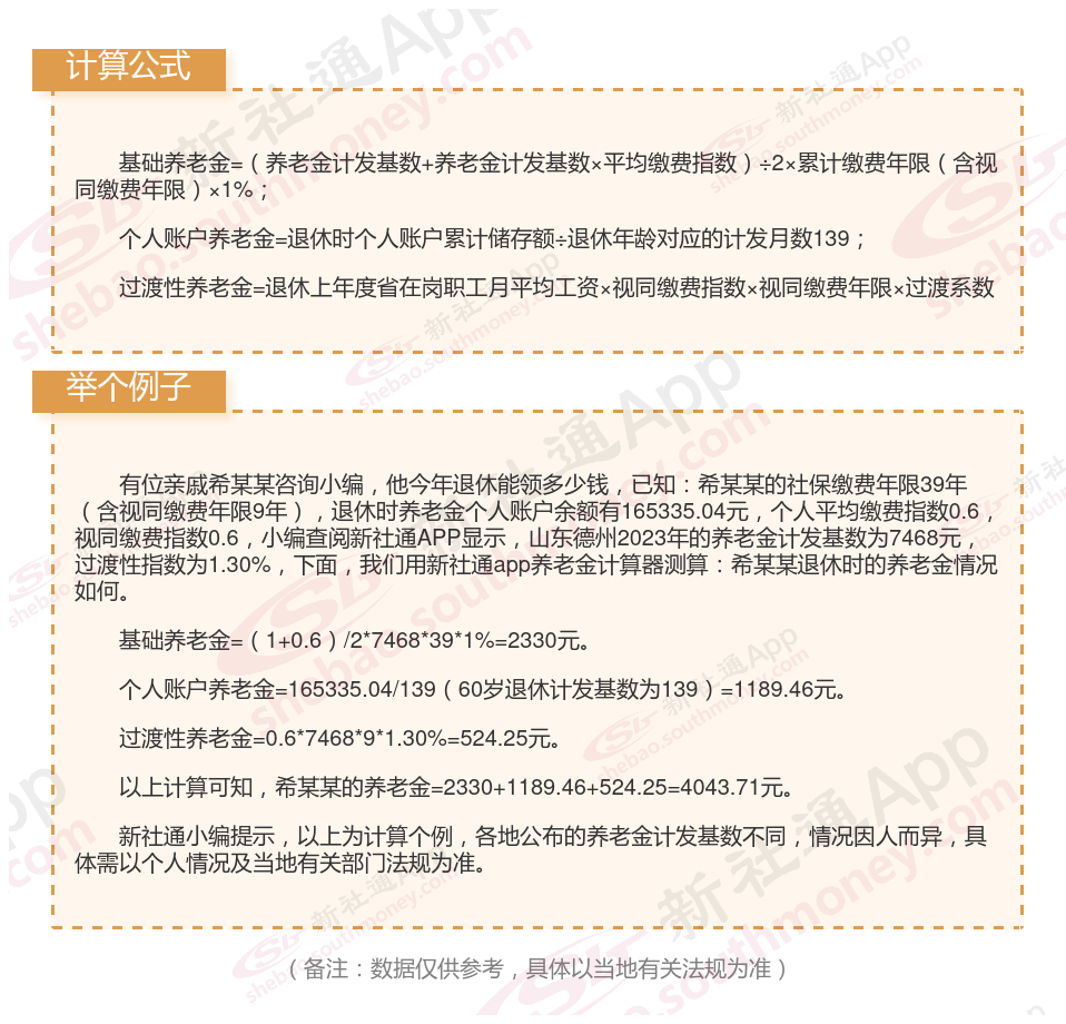 山东德州养老金计算公式2024年计算方法(在线计算器)