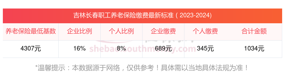 吉林长春养老保险缴费基数2023-2024年最新标准(最低)