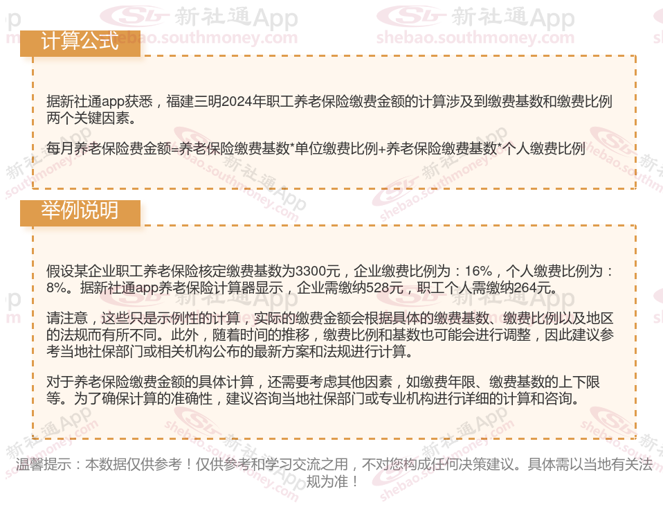 福建三明养老保险缴费基数2023-2024年最新标准(最低)