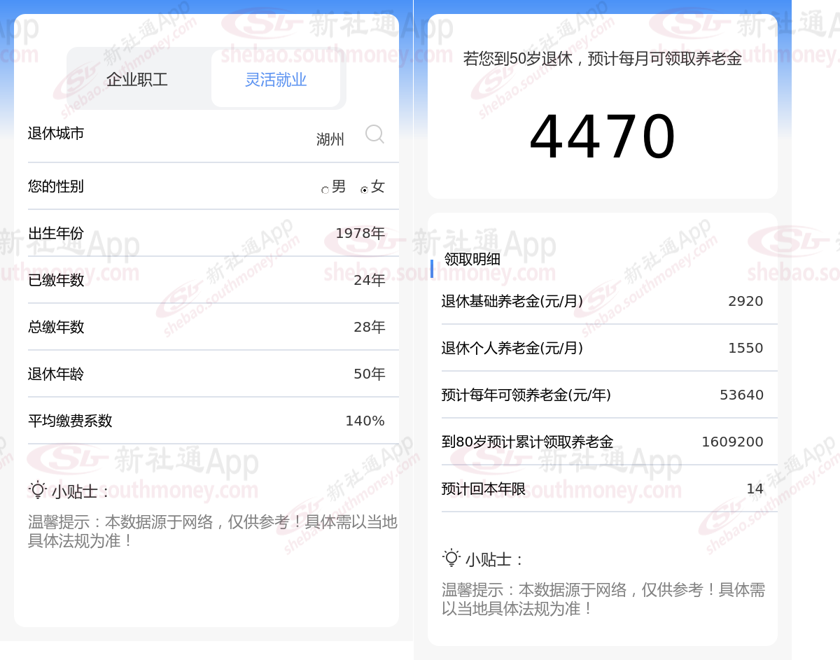 通过新社通APP-养老金计算所得:在保持退休城市、出生年份、退休年龄以及缴费系数这些条件不变的前提下,当个人的社保缴费年限累积达到28年时,其相关计算方式如下: