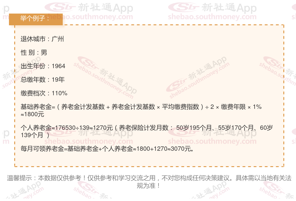 不久前,广州的一位男性企业退休人员向我们提出了关于他养老金的疑问。他出生于1964年,已经拥有了。19年的工龄,且一直以来他的养老保险都是按照稍高于平均水平的110%档位缴纳的。他现在非常想知道,基于他的这些条件,他退休后每月能够领取到的养老金是否能够达到或超过2700元。