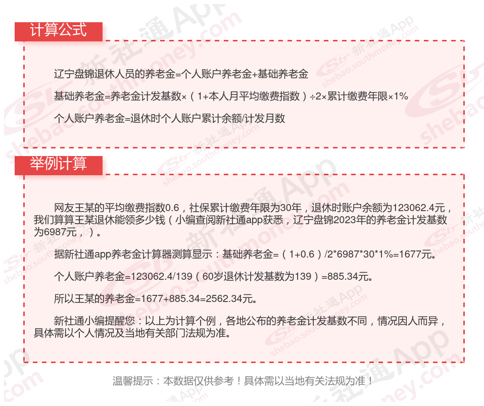 辽宁盘锦养老金计算公式2024年计算方法(在线计算器)