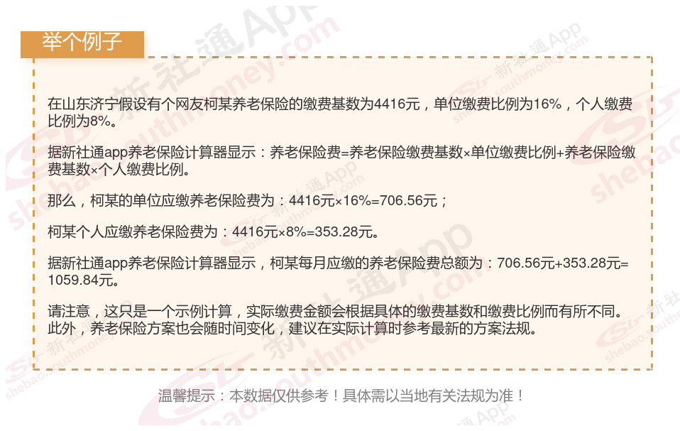 据新社通app显示,2023-2024年山东济宁职工养老保险的缴费标准是根据缴费基数来确定的: