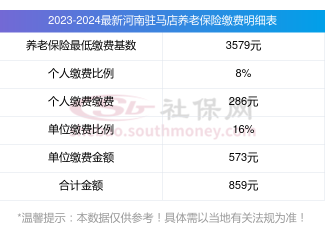 河南驻马店养老保险缴费基数2023-2024最新标准如下