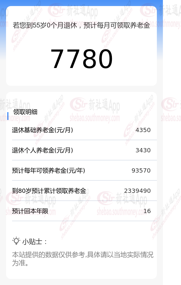 王某,作为一位勤勉的职工,他的养老保险缴纳记录长达34年之久,且缴费档次一直保持在较高的280%水平。基于这些关键数据,我们利用新社通app养老金计算器,结合最新的养老保险法规,对其养老金进行了如下估算: