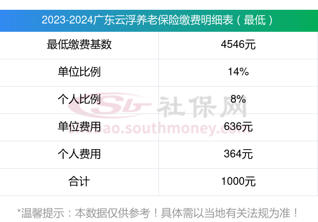 广东云浮养老保险缴费基数2023-2024年最新标准(最低)要交多少钱一个月?