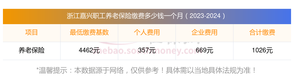 浙江嘉兴假设某职工养老保险的缴费基数为4462元,单位缴费比例为15%,个人缴费比例为8%。
