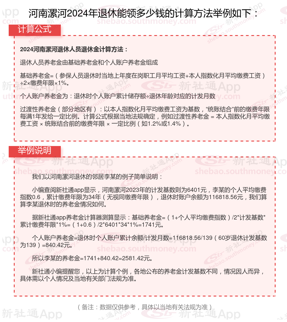 河南漯河养老保险退休能领多少钱?(在线计算举例说明)