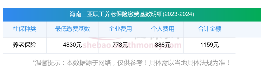 据新社通app获悉,海南三亚养老保险缴费金额的计算涉及多个因素,包括缴费基数、缴费比例等,且各地的具体方案可能存在差异。以下是一个基于一般情况的养老保险缴费金额计算举例: