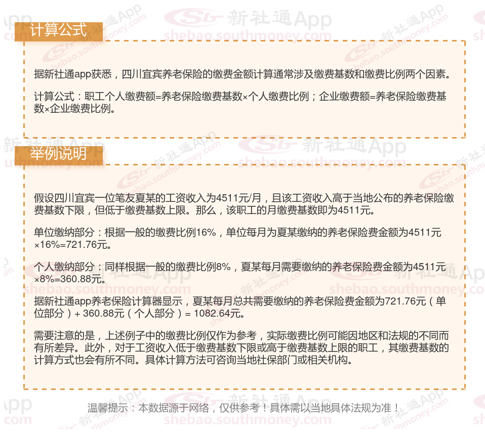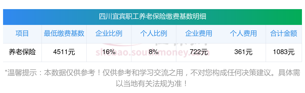 四川宜宾养老保险缴费基数2023-2024年最新标准(最低)要交多少钱一个月?